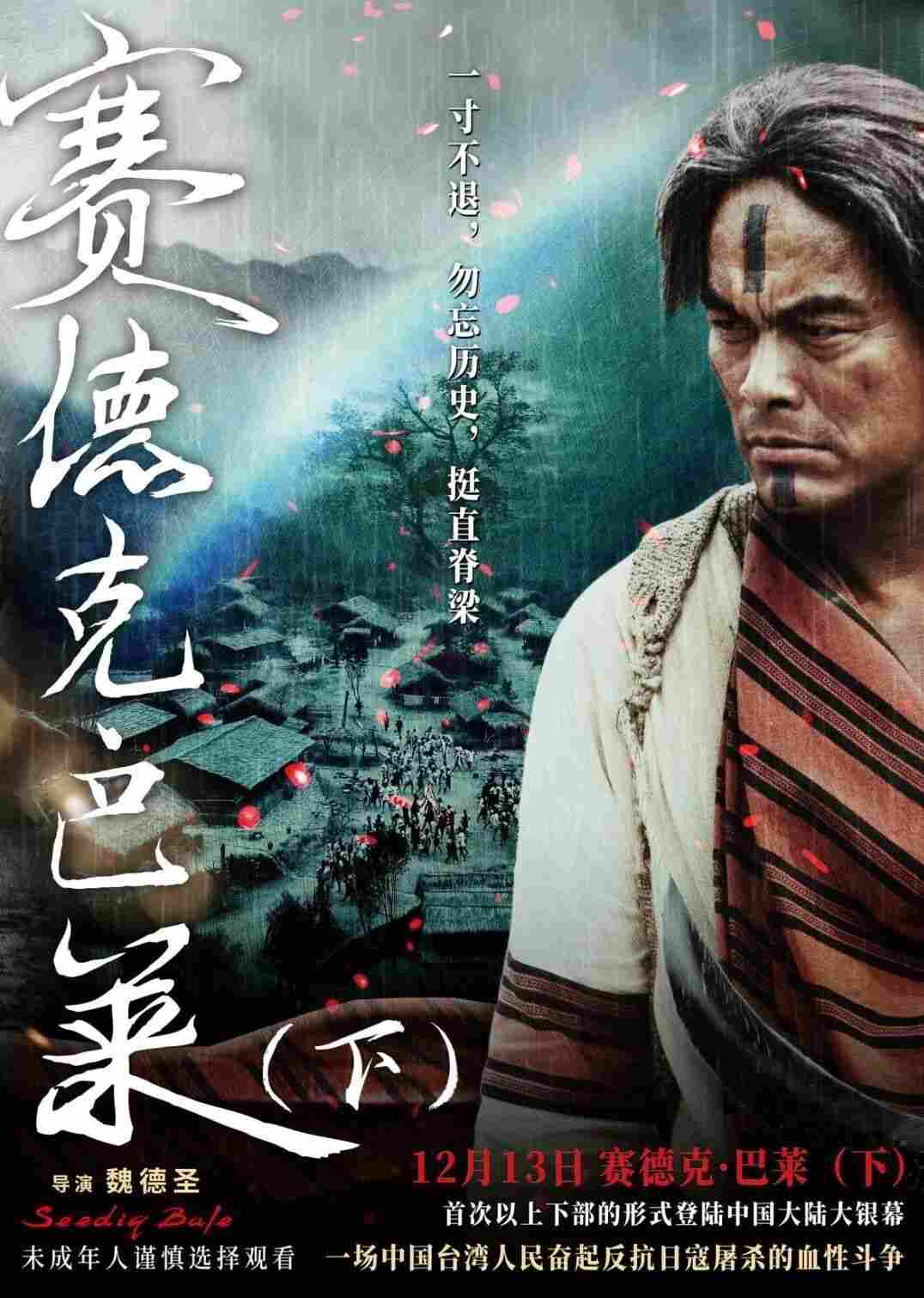 莫那·魯?shù)缆暑I(lǐng)族人在1930年10月27日日本人為侵臺魁首舉行紀念之時發(fā)動“霧社起義”,此消息迅速傳至據(jù)臺日軍指揮部,陸軍少將鐮田彌彥率領(lǐng)由軍隊與警察組成的聯(lián)合部隊進行征討。馬赫坡等社的賽德克人分頭行動,利用地形優(yōu)勢重創(chuàng)日軍先頭部隊。駐守霧社的警察小島,利用部族矛盾成功勸說道澤社頭人鐵木·瓦力斯率族人協(xié)助日軍圍攻莫那·魯?shù)馈椴贿B累抗敵的勇士們,隨部落向密林轉(zhuǎn)移的婦孺自縊而亡。作為賽德克人但已成為巡警并娶了日本妻子的一郎,看到這一幕,承受不了內(nèi)心的煎熬切腹自盡。鐮田彌彥對部隊的緩慢推進大為不滿,于是下令使用生化炮彈攻擊。在沖天的火光中,莫那·魯?shù)琅c賽德克英雄們迎來了決死之戰(zhàn)。他們眼前出現(xiàn)的是先人說過的那道鏈接靈魂歸處的“彩虹橋”……