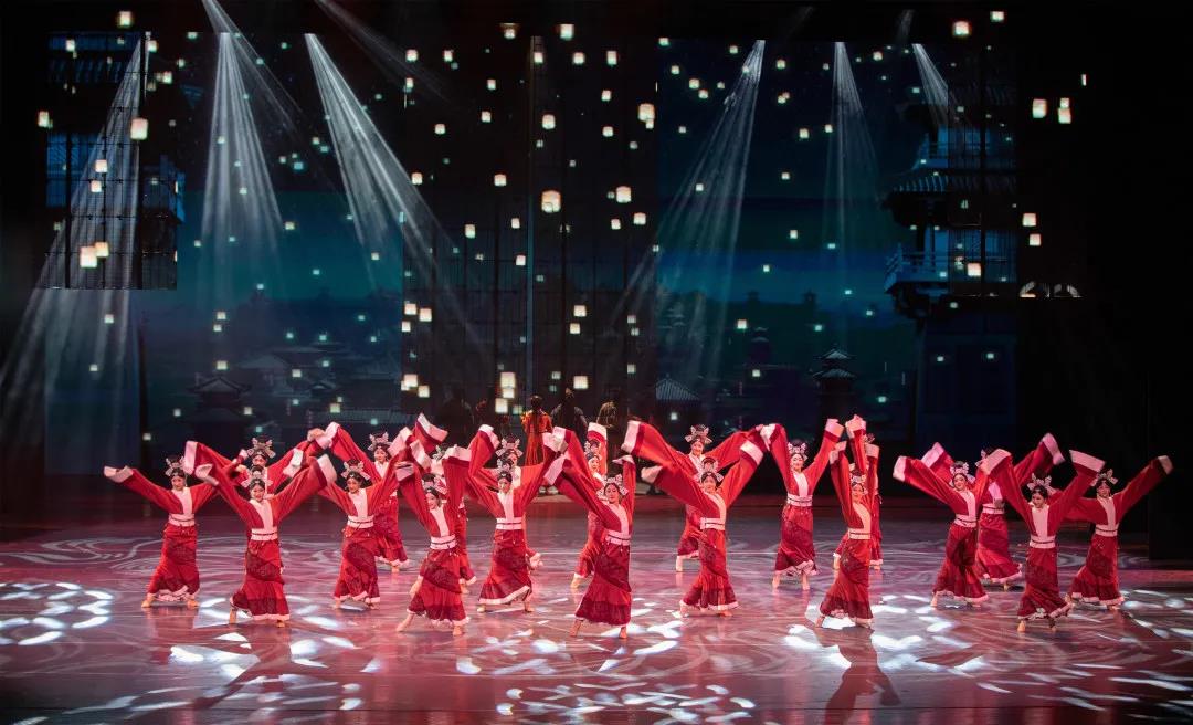 “錦繡”的創作充分考慮了漢時期的文化審美,找到這個時期動作形態的特征,為強化突出漢代宮廷的高雅端莊和威儀萬千,細節處加入很多井字格的旋轉和調度組合,在舞臺上展示出大國氣質的穩定感和規整性。舞劇呈現上,當上元燈火鋪滿天空,舞者們齊齊仰望祈愿,也表達了舞劇《五星出東方》這部作品各民族和諧友愛、同生共榮的主題。