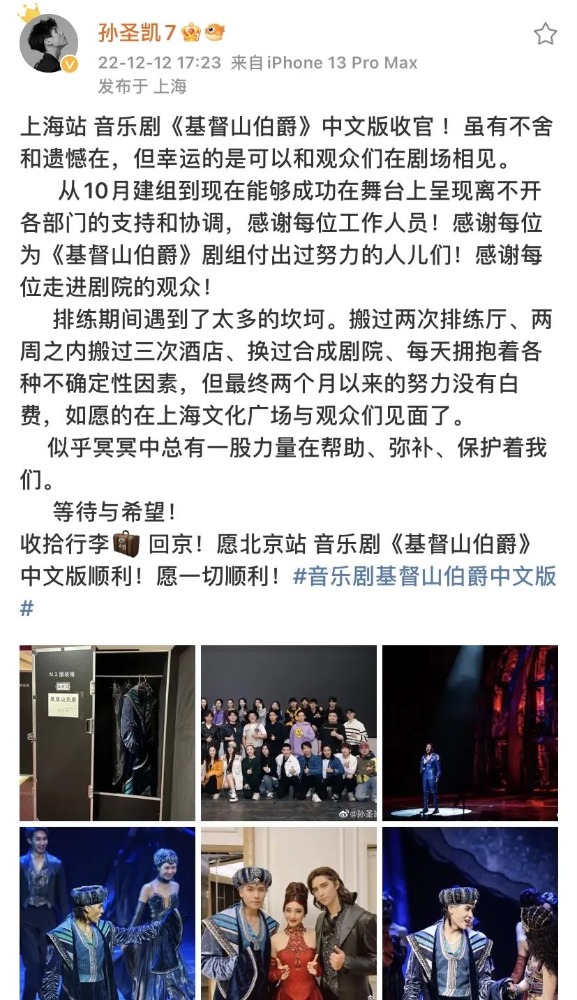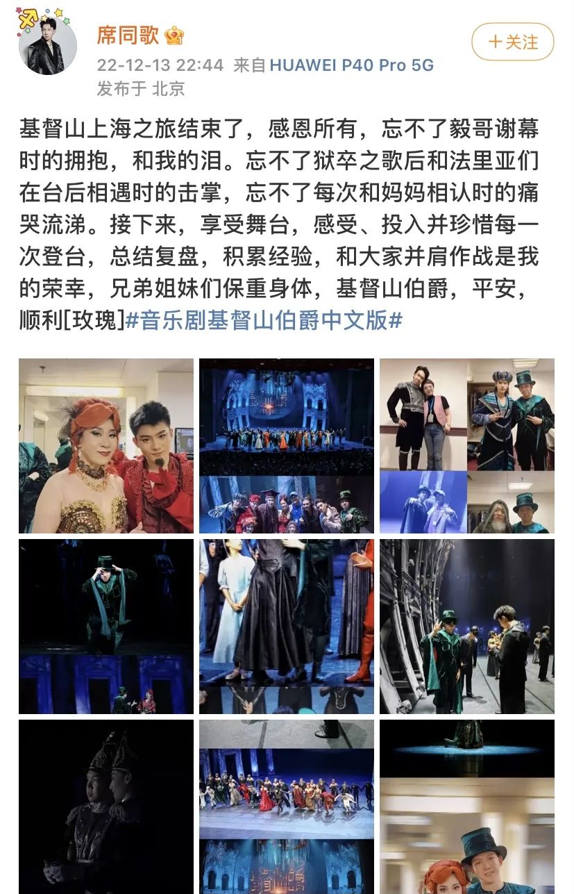 12月11日,由北京演藝集團出品,上海文化廣場劇院管理有限公司聯合出品,北京歌劇舞劇院制作的大型音樂劇《基督山伯爵》中文版上海站圓滿落下帷幕。