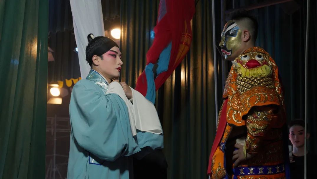 舞臺(tái)上,演員年輕的面孔與所演繹的傳統(tǒng)戲曲秦腔形成強(qiáng)烈的反差;幕布后,塑料篷布搭建的簡(jiǎn)易后臺(tái),各色油彩臉譜交織穿梭;舞臺(tái)下,無(wú)論是臉上布滿溝壑的老人還是不會(huì)走路的娃娃,都聚精會(huì)神的看著臺(tái)上,特別是原著小說(shuō)里描寫(xiě)的秦腔絕活“吐火”近在咫尺的呈現(xiàn)眼前,主創(chuàng)們深受感染與震撼。
